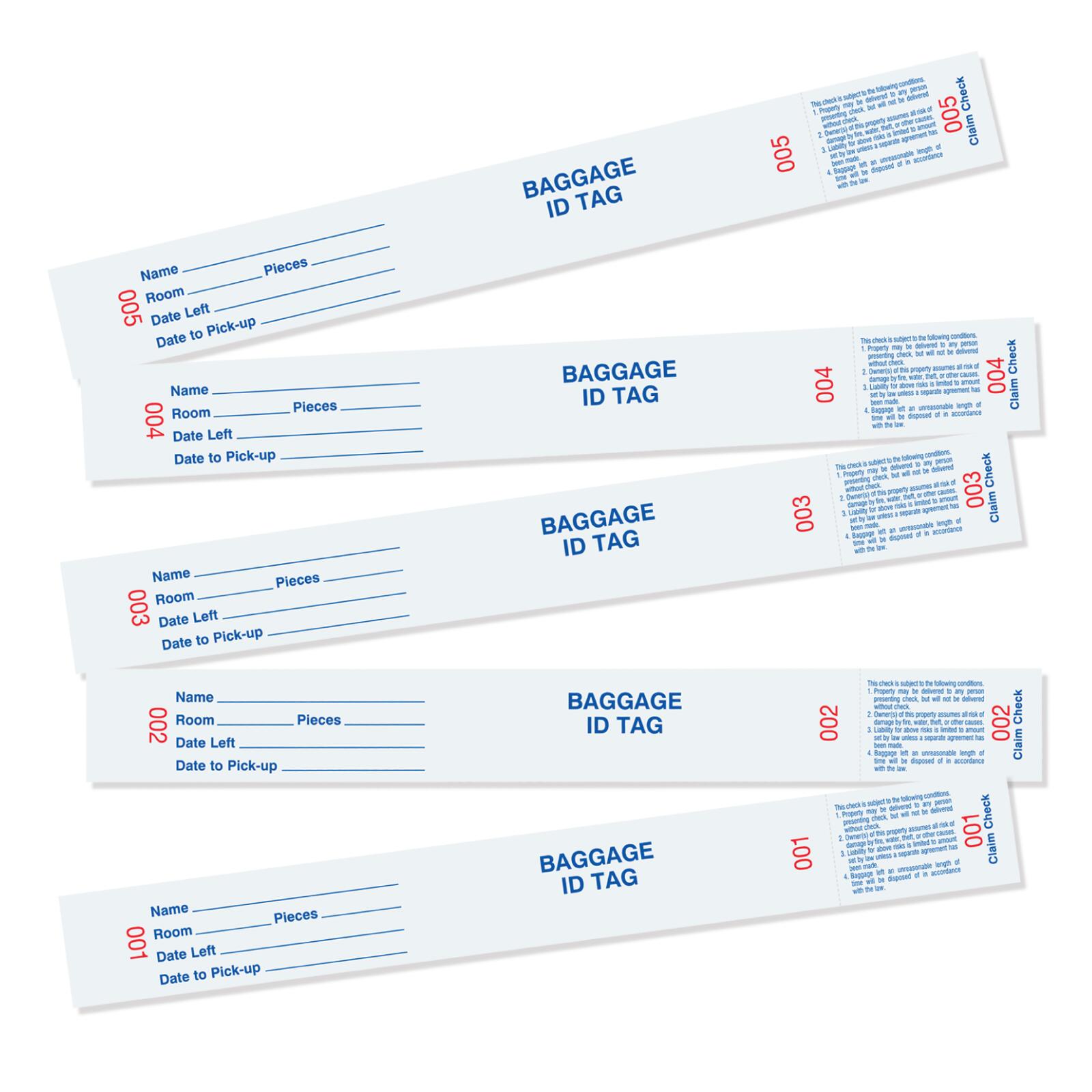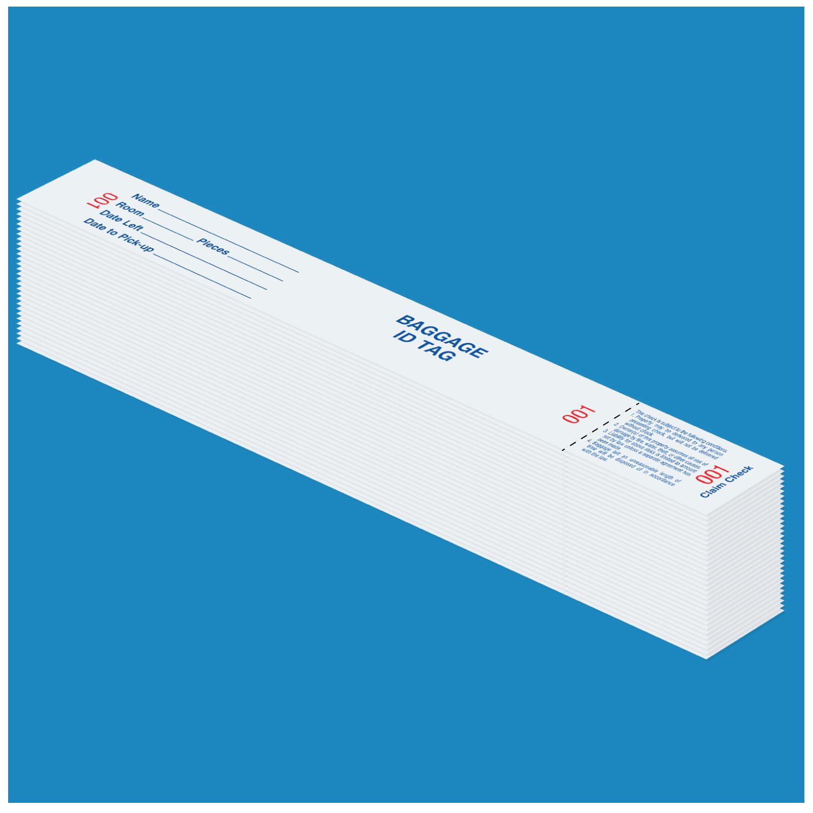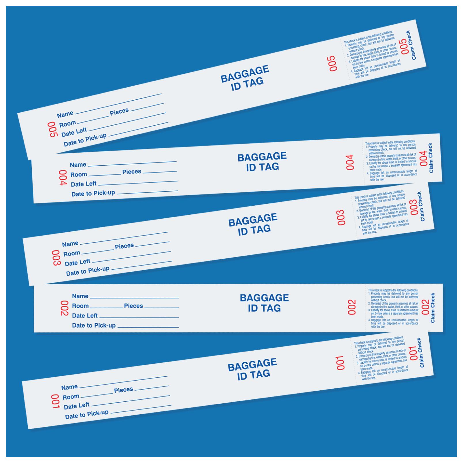 - Baggage claim check tags.