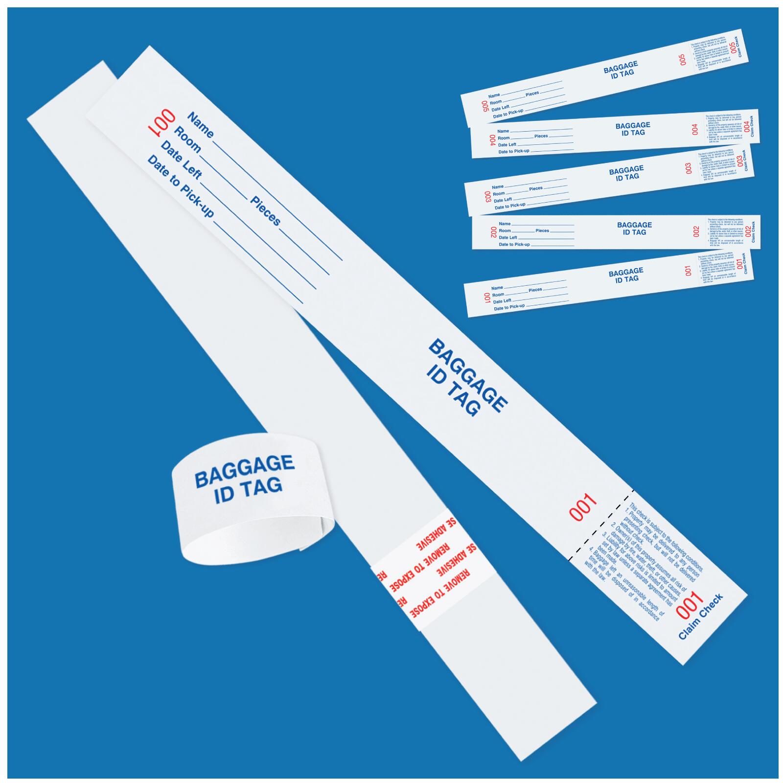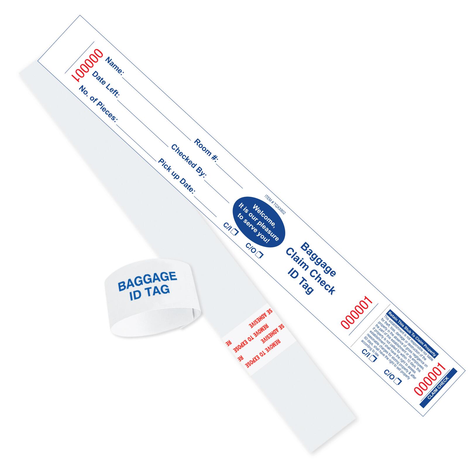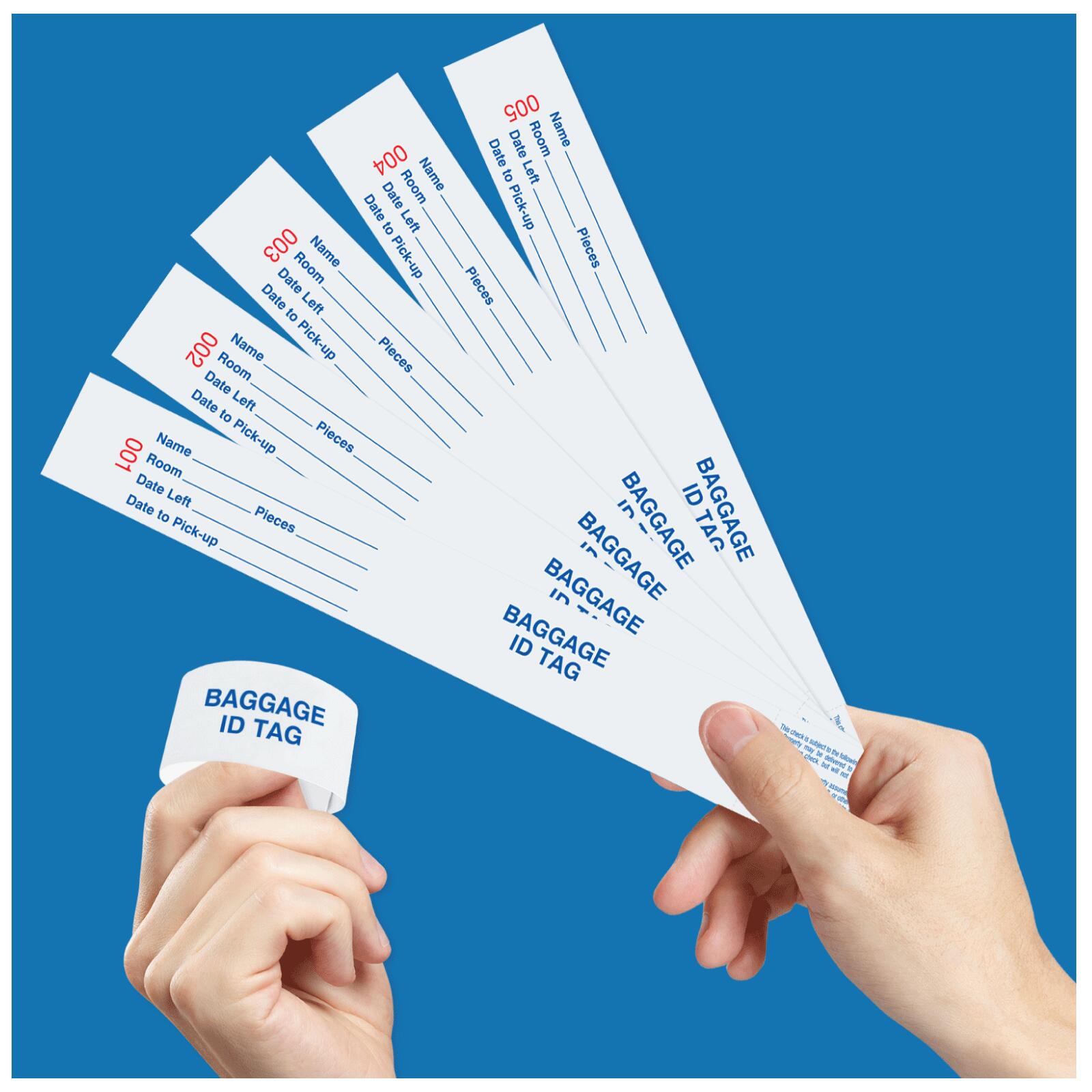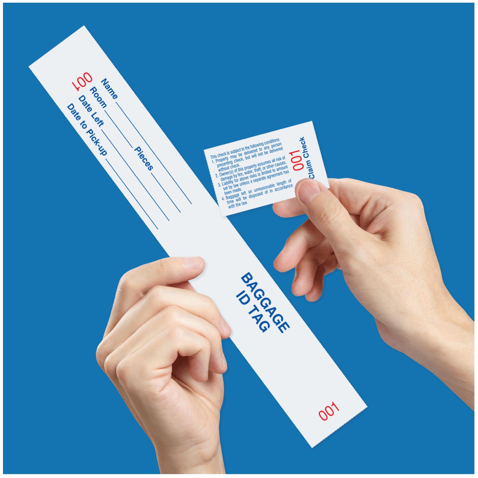 - Baggage claim check tags.
