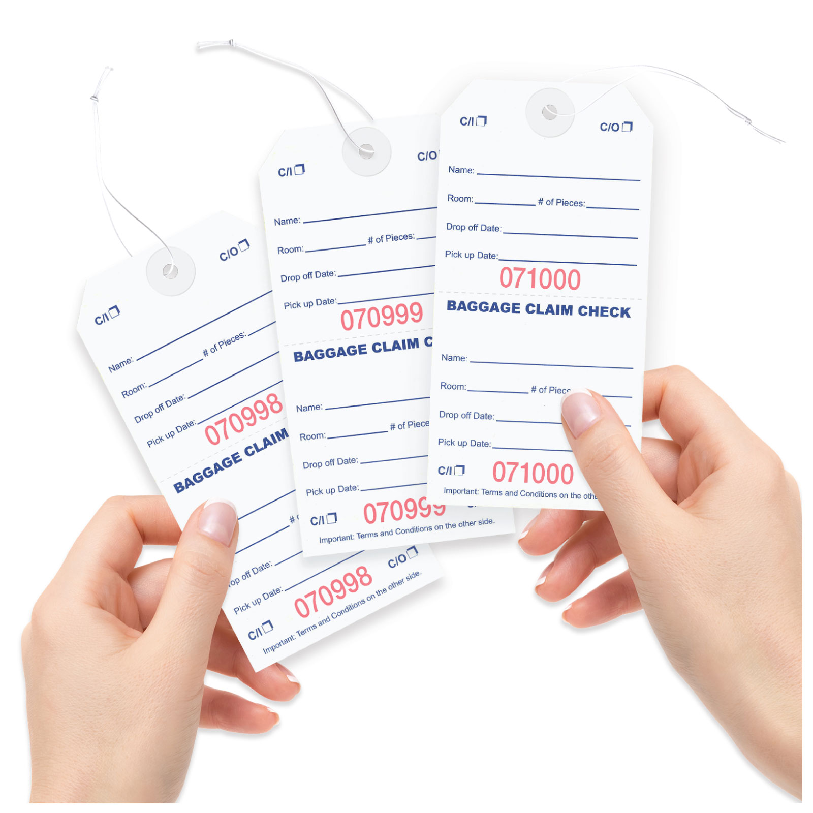 - Baggage claim check tags.