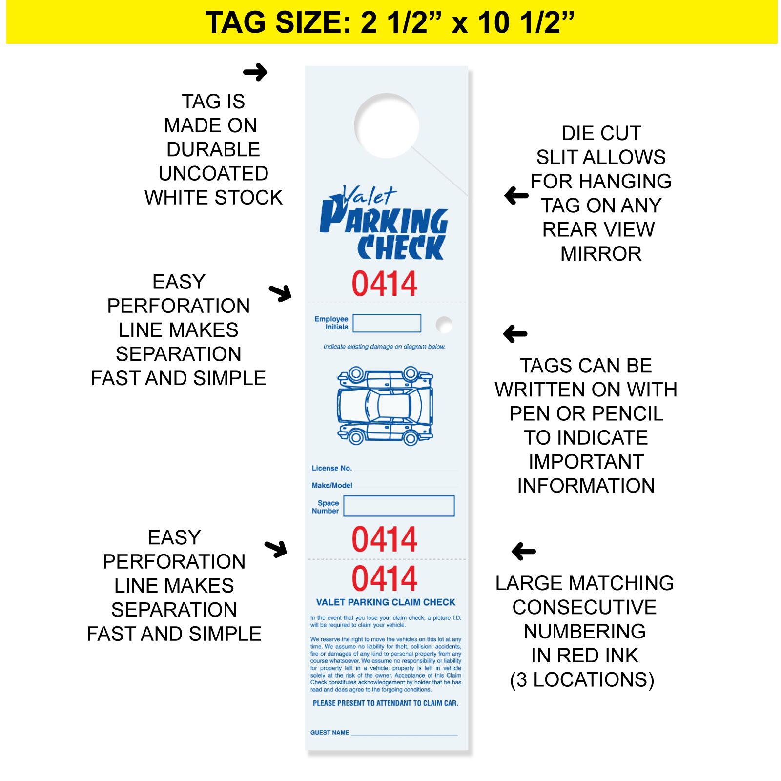 Parking & Claim Check Tags, White, 2 1/2" x 10 1/2"