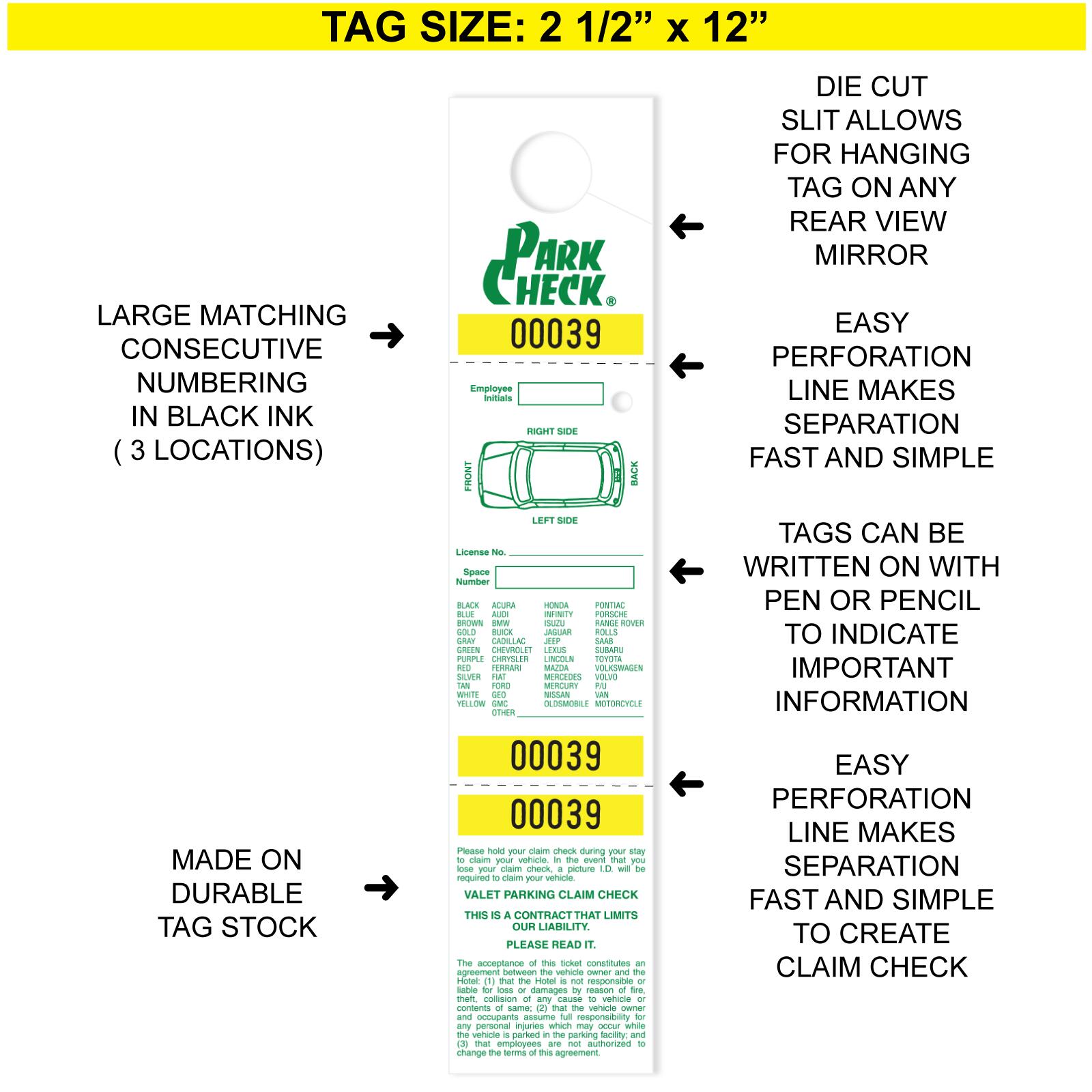 Parking & Claim Check Tags, White, 2 1/2" x 12"