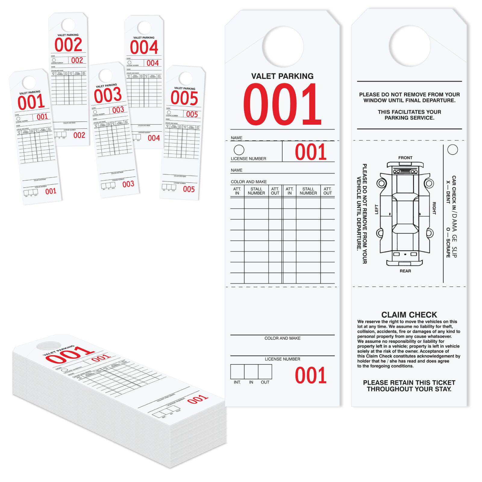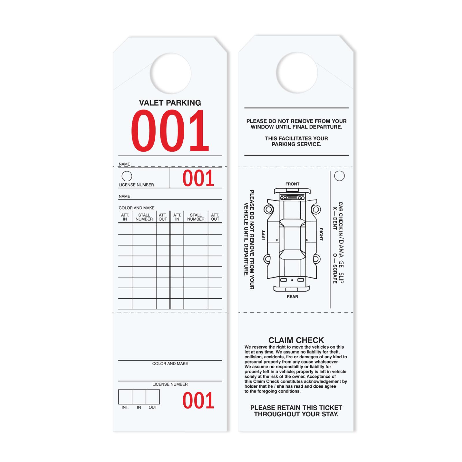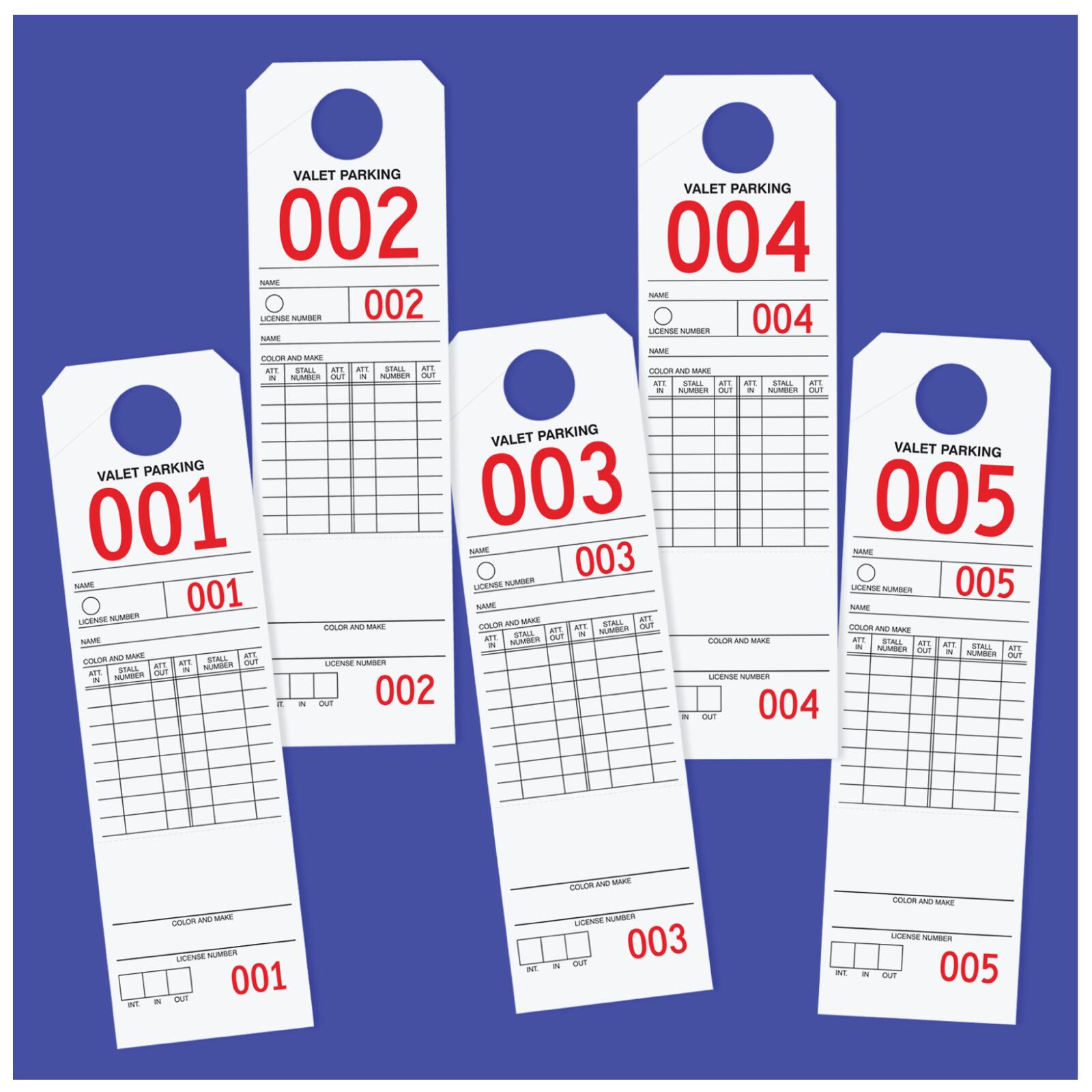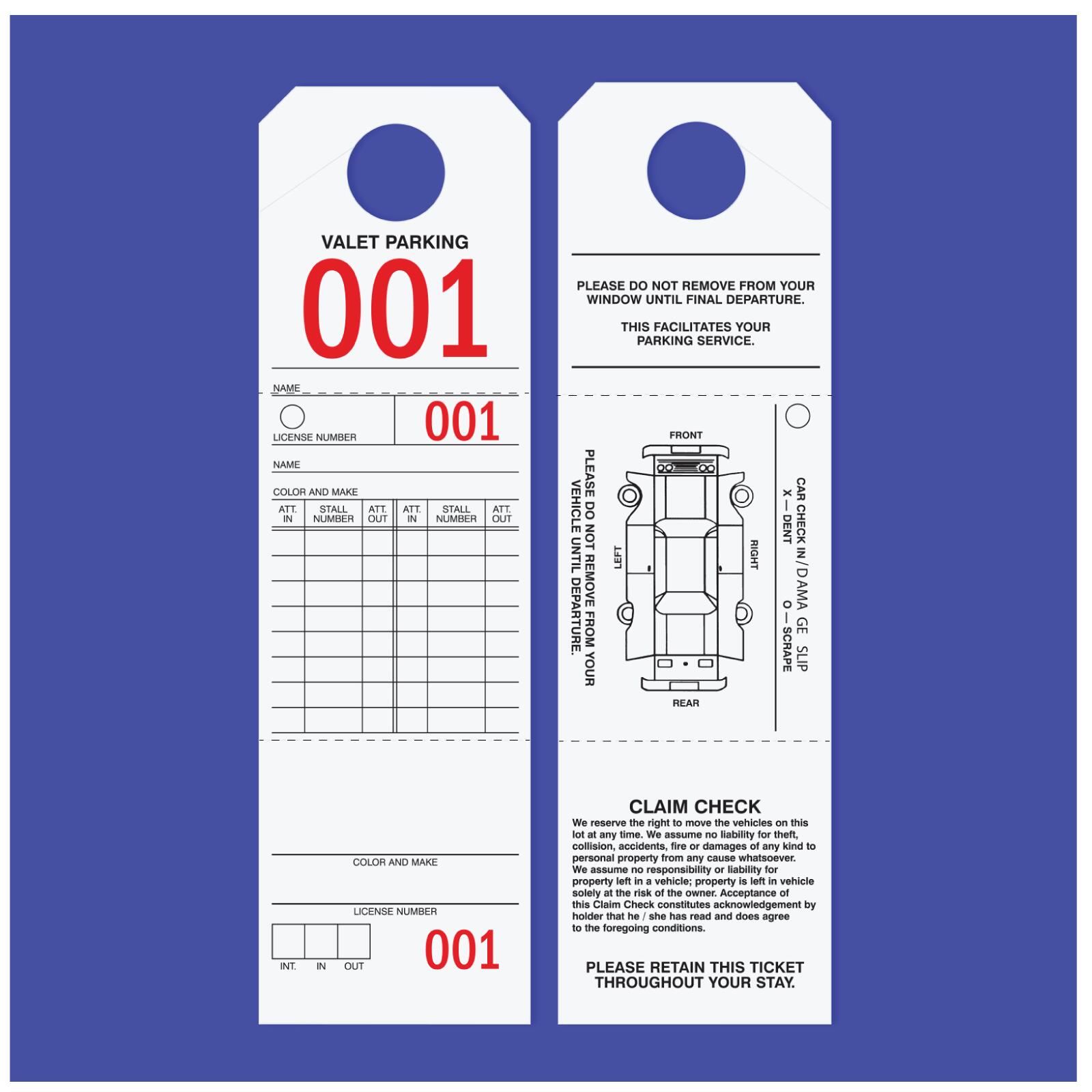 TGXX012B-1Parking-valet tags are designed to help in managing and controlling parking-valet of cars in hotels, restaurants, parking lots and where parking management is required. Made on Bright Yellow tag cardstock to be highly visible and durable. Tags are consecutively numbered in big bright letters making this the best parking and valet tag in the market.Usage